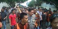diantarkan pendukungnya, eggi menyerahkan 1,2 juta fotokopi kartu tanda penduduk ke kantor komisi pemilihan umum jatim, kamis (11/4/2013).